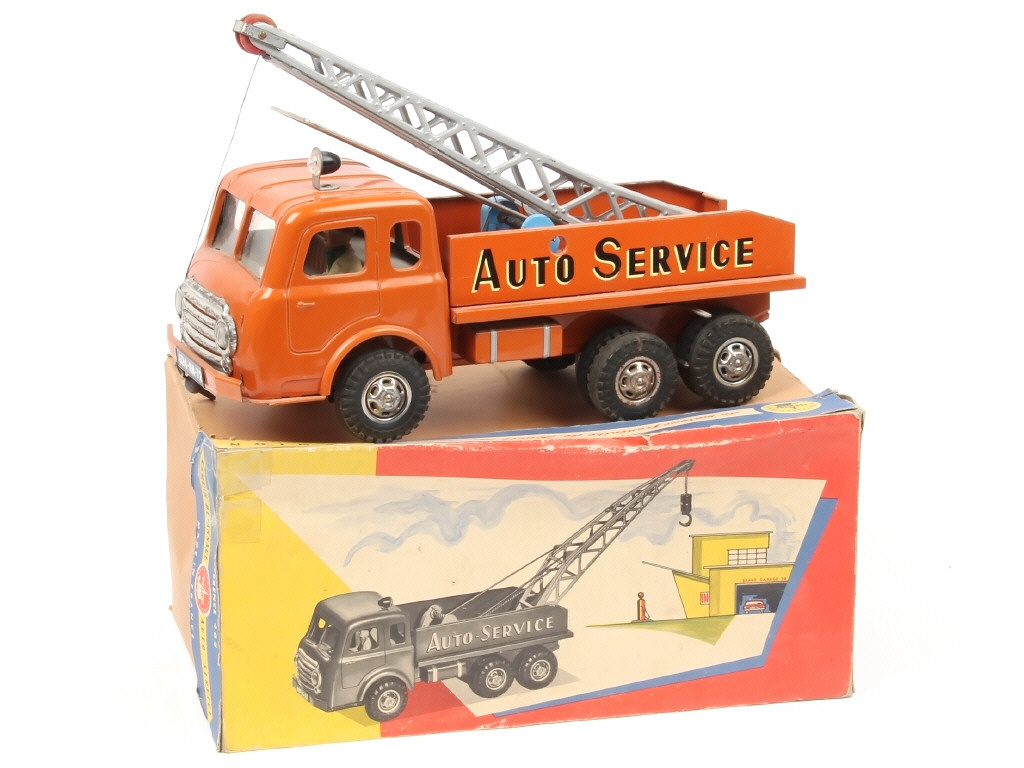 longueur 28 cm - avec moteur à clef (fonctionne) & clef - manque manivelle - ficelle & crochet non d'origine - quelques traces d'oxydation par endroit (certaines parties plus ou moins ternies)