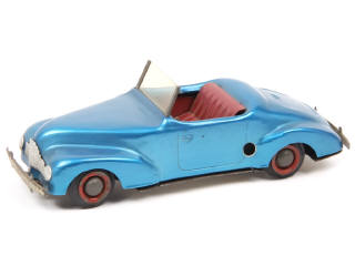 longueur 16,5 cm - avec moteur à clef (fonctionne) & direction - quelques éléments plus ou moins ternis avec légères traces d'oxydation - pneus séchés - manque volant