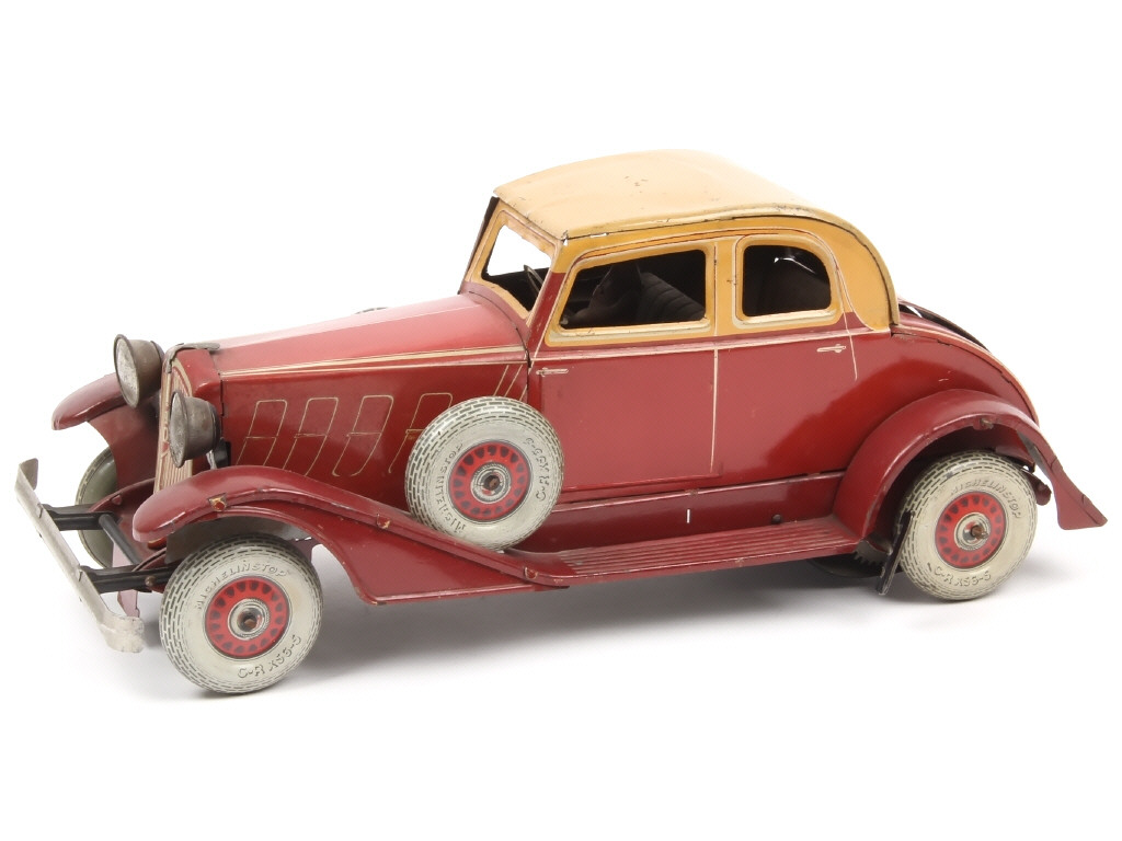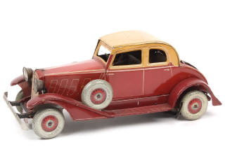 longueur 37,5 cm - moteur à ressort (fonctionne) - petites déformations sur la carrosserie par endroits (notamment sur le toit) - quelques traces d'oxydation avec frottements plus ou moins importants (notamment sur le plancher)