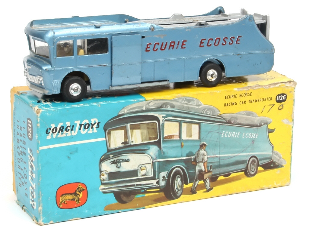 CORGI TOYS (GB) 1126 COMMER Transporteur de voitures 'ECURIE ECOSSE' bleu clair métal & gris métal