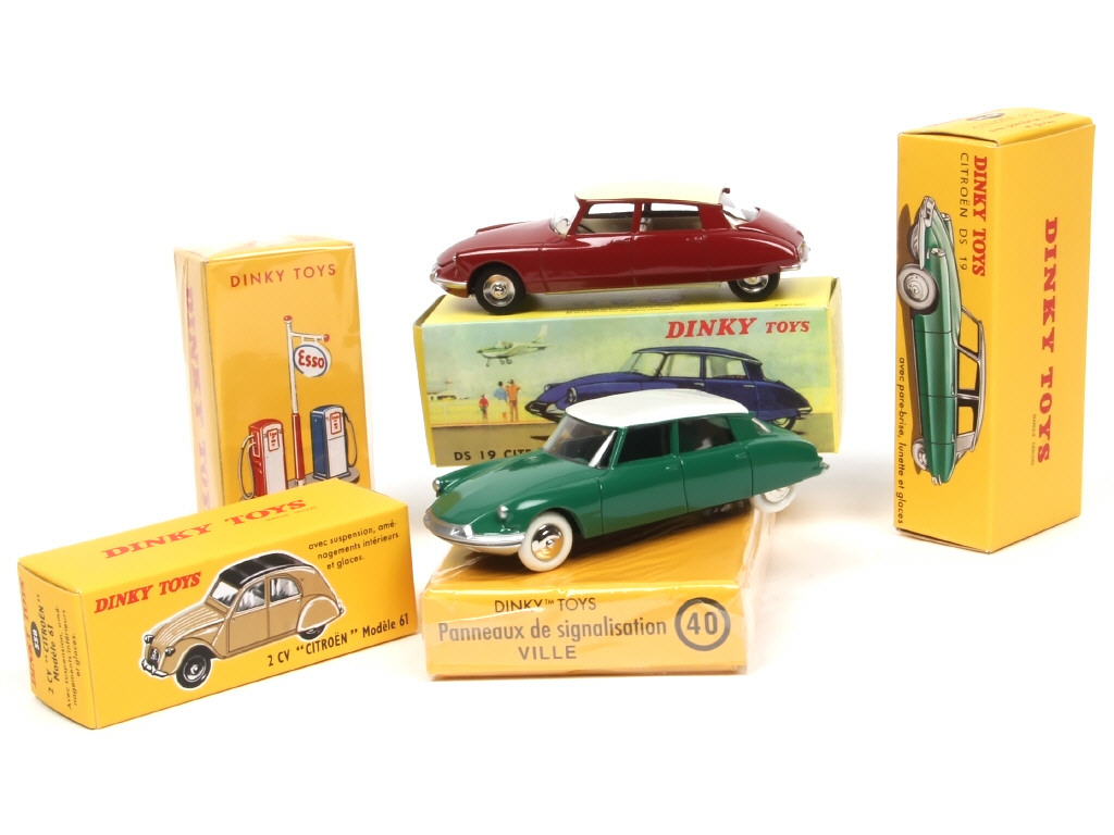 comprend : DS19, 2CV, poste de ravitaillement & panneaux de signalisation de ville - 2 exemplaires sous sachet