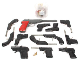 états de 'B' à 'D' - comprend notamment : à flèches & à amorces - petites déformations - certains exemplaires à revoir - on y retrouve notamment la marque EUREKA - petites traces d'oxydation - on y joint une boite de différentes amorces (en boite non conforme)