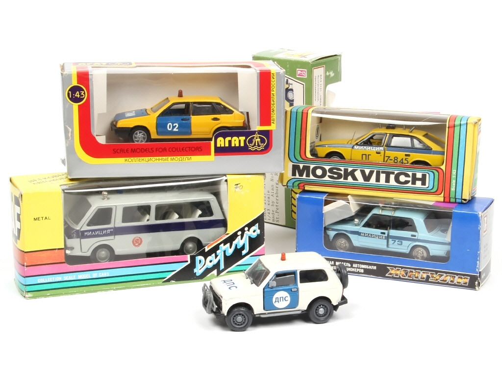 2 modèles en série limitée - états de 'A' à 'B' - comprend notamment les modèles : LADA, MOSKWITCH & RAF - un gyrophare à repositionner sur un exemplaire - on y retrouve notamment la marque : AGAT - les boites sont en états de 'b' à 'c' (avec petites annotations)