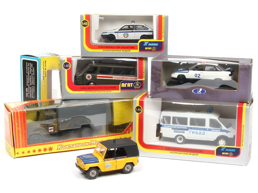 2 modèles en série limitée - comprend notamment les modèles : UAZ, LADA & RAF (suspensions arrières affaissées) - on y retrouve notamment la marque AGAT - quelques accrocs sur les boites