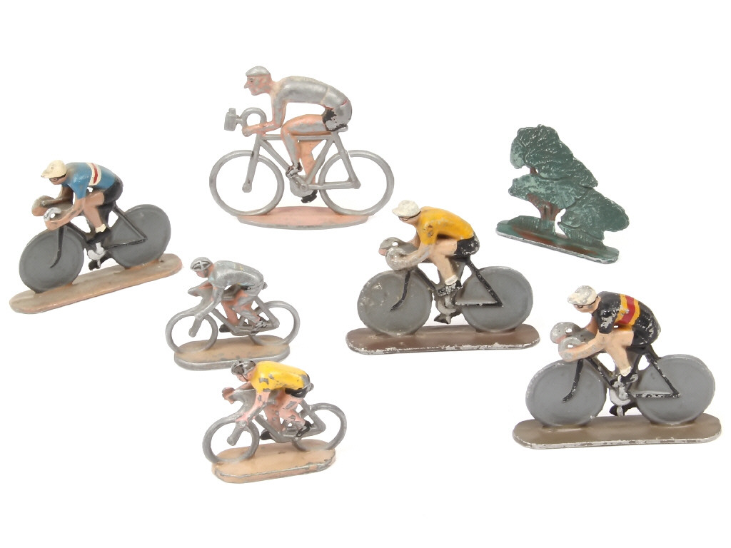 QUIRALU (FRANCE) Ensemble de 3 coureurs cyclistes & un arbuste