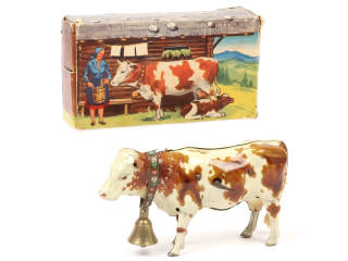 GNK (ALLEMAGNE) Vache mécanique en tôle lithographiée crème & marron