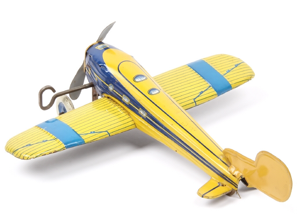 DIVERS Avion monoplan en tôle lithographiée jaune & bleu