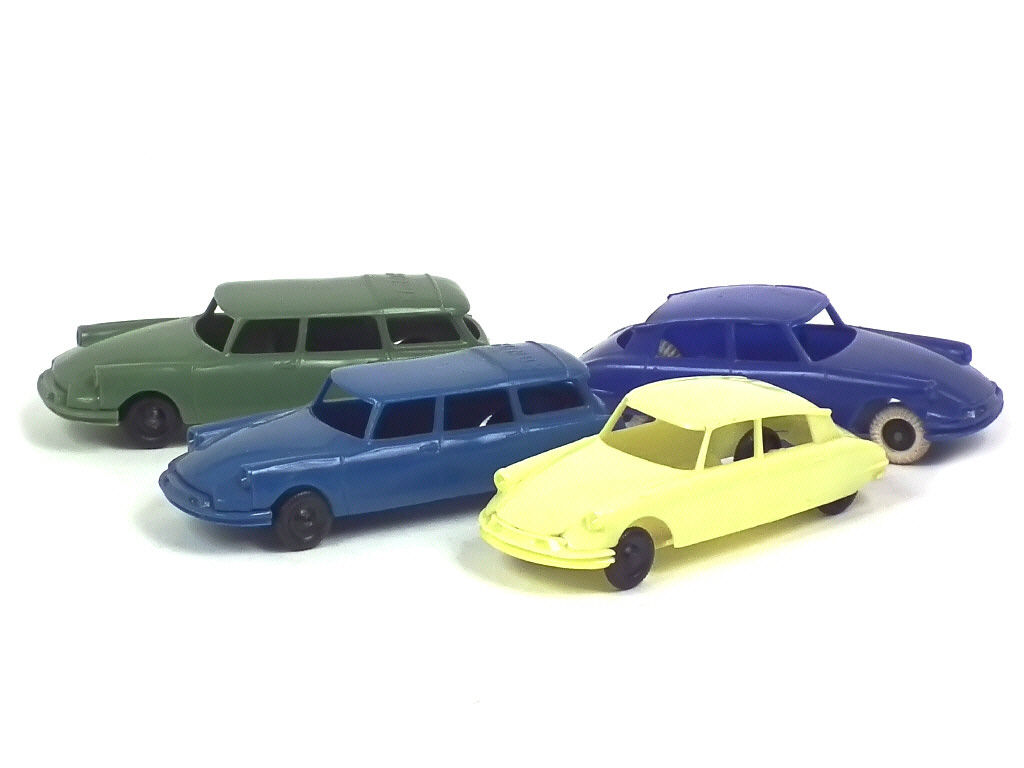 échelle 1/48ème - comprend les modèles : ID19 break 'BONUX' (marquage en relief sur le toit, 2 exemplaires différents) & DS19 (2 exemplaires différents dont un avec marquage 'BONUS' en relief sur le plancher)