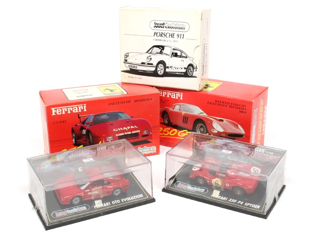 comprend les modèles : 250 GTO, EVOLUZIONE (2 exemplaires), 330 P4 SPYDER - on y joint une PORSCHE 911 CARRERA