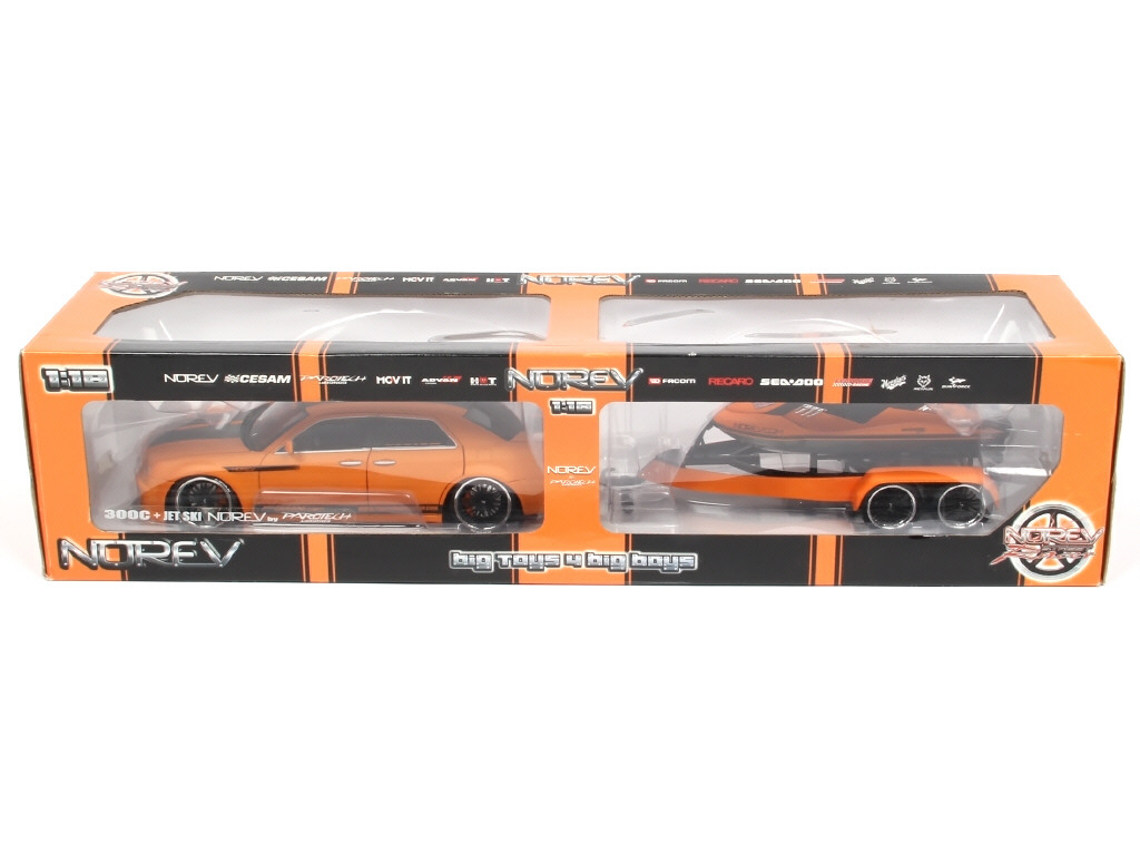 NOREV (FRANCE) 189406 CHRYSLER C300 avec jet-ski sur remorque orange & noir