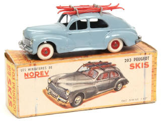 NOREV (FRANCE) 21 PEUGEOT 203 avec skis gris bleu