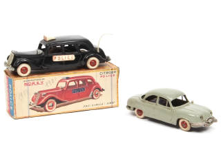 avec étiquette RHODIALITE (non détachée) - carrosserie & antenne légèrement déformées - un phare manquant - pellicule chromée en partie altérée - on y joint une PANHARD DYNA en état 'D' avec manques (avec étiquette RHODIALITE non détachée)