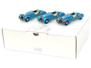 contient : PEUGEOT 402 DARL MAT Roadster (3 exemplaires n° 25, 26 & 27) - sur socle de présentation - BELLE REALISATION !