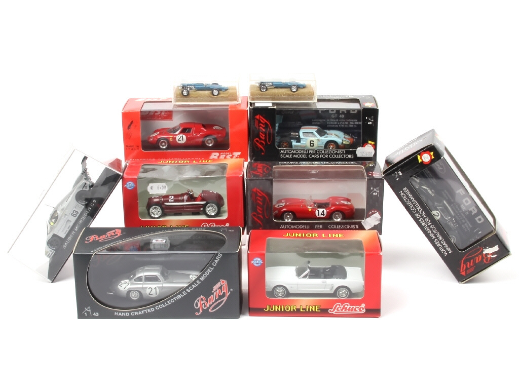 différentes échelles - comprend les modèles : MASERATI, FORD (3 modèles différents), MERCEDES (2 modèles différents), FERRARI (2 modèles différents) & MATRA FORD (2 modèles différents) - on y retrouve notamment les marques : SCHUCO, BANG & BEST MODELS