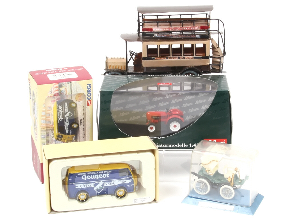 comprend notamment les modèles : PEUGEOT & PORSCHE - on y retrouve les marques : CORGI, SCHUCO, GUISVAL & CAUQUIL