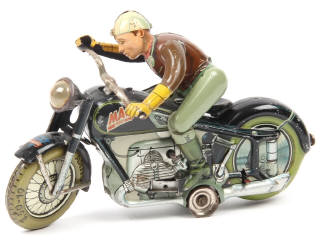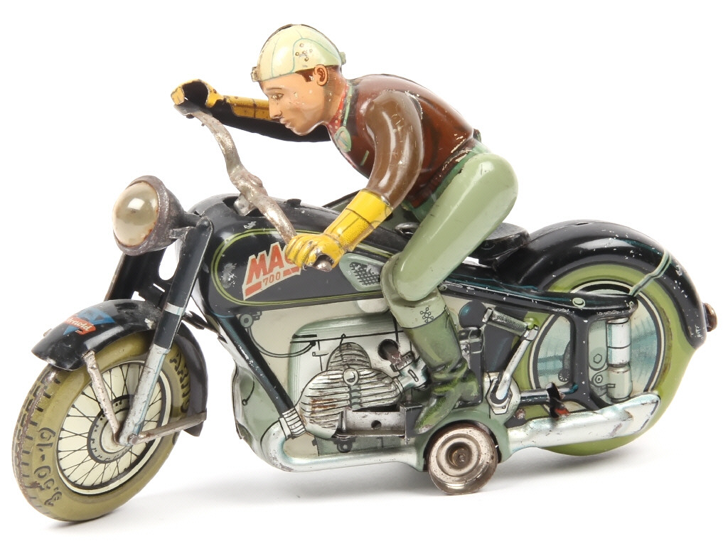 ARNOLD (ALLEMAGNE) 700 MAC 700 Moto avec pilote en tôle lithographiée noir & gris vert