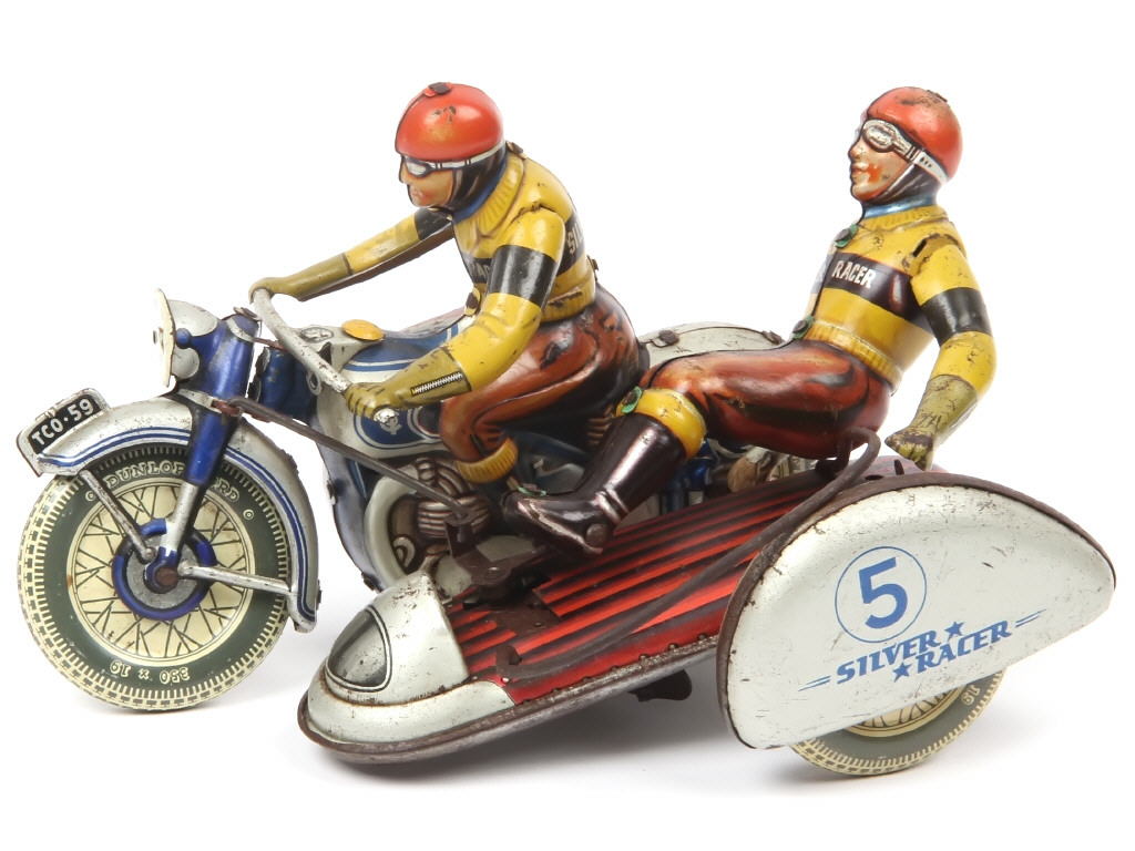 TIPPCO (ALLEMAGNE) TCO-59 Moto avec side-car de compétition en tôle lithographiée 'SILVER RACER' gris métal, rouge & jaune