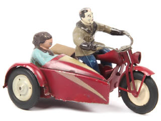POLICHINELLE (FRANCE) Moto avec side-car en tôle peinte rouge