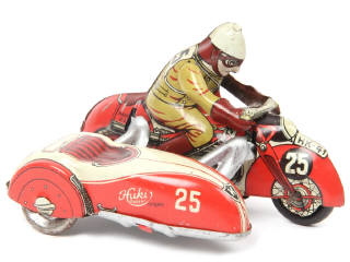 HUKI (ALLEMAGNE) HK-41 Moto avec side-car en tôle lithographiée rouge, brique & crème