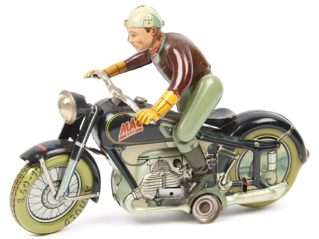 ARNOLD (ALLEMAGNE) 700 MAC 700 Moto avec pilote en tôle lithographiée noir & gris vert