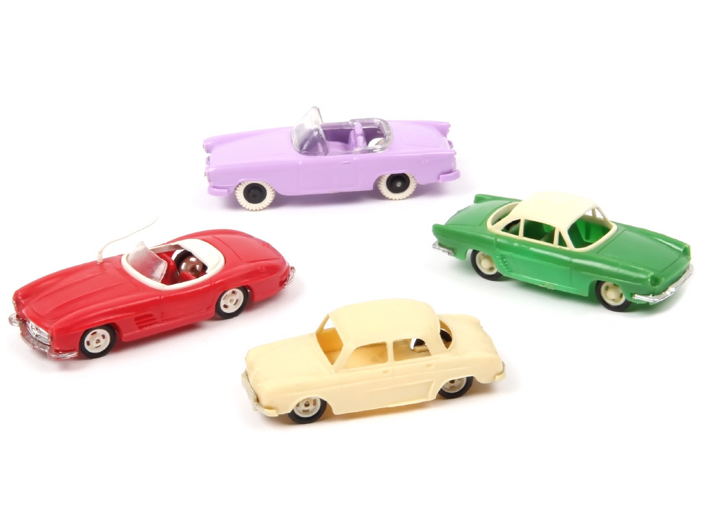 comprend : SIMCA OCEANE, RENAULT CARAVELLE, DAUPHINE & MERCEDES 300SL - quelques petites fêlures sur certaines jantes, carrosseries encrassées & petites parties très légèrement fondues