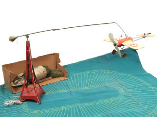 représente un Morane Saulnier & la Tour Eiffel : hauteur : 80 cm - avec système à cordelette & tapis de jeu - petites restaurations par endroits - possibilité de petits accessoires manquants