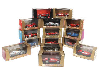 miniatures reproduisant notamment les modèles : MASERATI, LANCIA, FERRARI, BUGATTI & AUTO UNION - quelques accrocs sur les suremballages