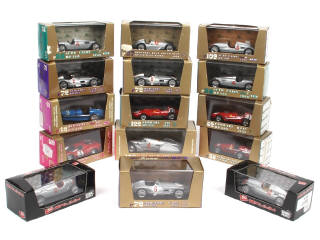 miniatures reproduisant notamment les modèles : MERCEDES, FERRARI, BUGATTI & AUTO UNION - quelques accrocs sur les suremballages