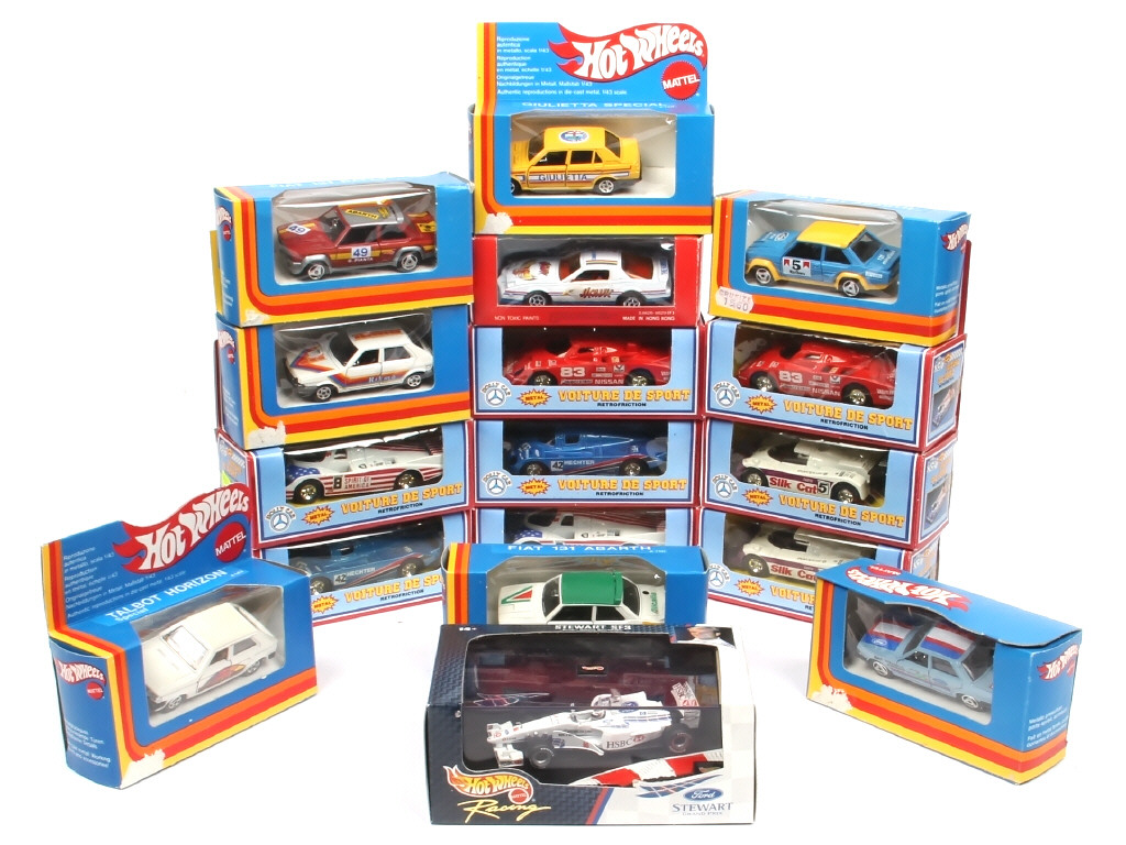 miniatures reproduisant notamment les modèles : FIAT, SIMCA & FORD - on y retrouve les marques : MATTEL, MOTOR FORCE & HOLLY CAR (avec moteurs à rétro-friction, non testés) - manques de papier sur certaines boîtes