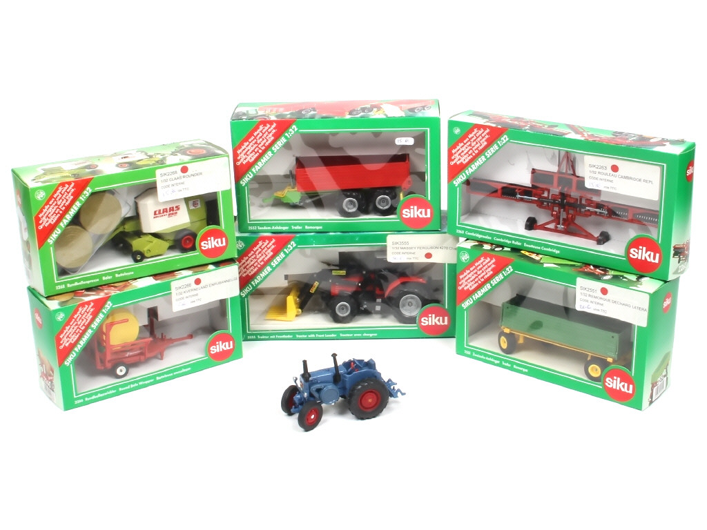 SIKU (ALLEMAGNE) Ensemble de 2 engins agricoles & 5 matériels agricoles
