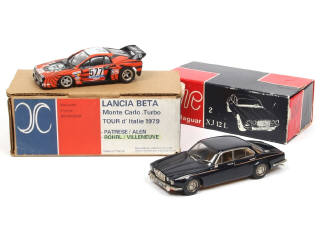 comprend : JAGUAR XJ 12 (série limitée) & LANCIA BETA Monté Carlo (manque un rétroviseur, carrosserie légèrement encrassée) - on y retrouve notamment la marque AMR