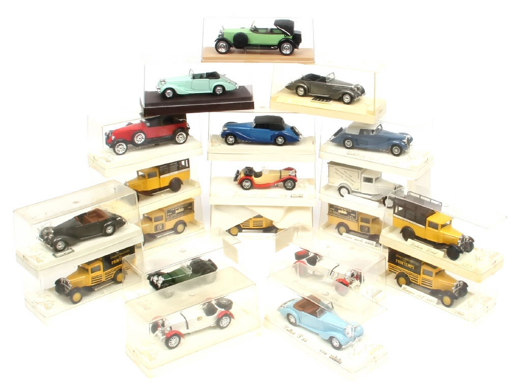 miniatures reproduisant notamment les modèles : CITROEN, MERCEDES, JAGUAR, DELAHAYE & HISPANO SUIZA - certaines boites avec petites déformations & salissures - possibilité de petits accessoires manquants