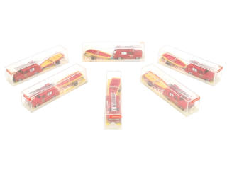 MAJORETTE (FRANCE) 362 Ensemble de 6 DODGE de pompiers avec barque sur remorque rouge & jaune