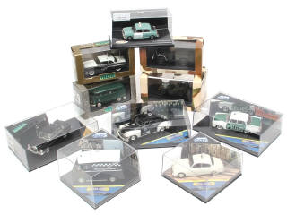 miniatures reproduisant notamment les modèles : FORD, MORRIS, MERCEDES, VOLKSWAGEN & JAGUAR (un rétroviseur à recoller) - un modèle avec certificat - quelques suremballages en état 'c'