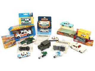 miniatures reproduisant notamment les modèles : FORD, LAND ROVER, MERCEDES, VOLKSWAGEN & DATSUN - on y retrouve notamment les marques : MATCHBOX & DINKY TOYS - 7 modèles sans boite (en état 'b' à 'd' pour les autres) - quelques petits manques