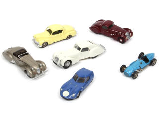 kits montés - miniatures reproduisant les modèles : TALBOT LAGO, PEUGEOT 402, 203 coupé & PANHARD - on y retrouve notamment les marques : IDEA 3 , WVM, M.R.F & MIKANSUE (entourage de pare-brise légèrement déformé) - manque un saute-vent