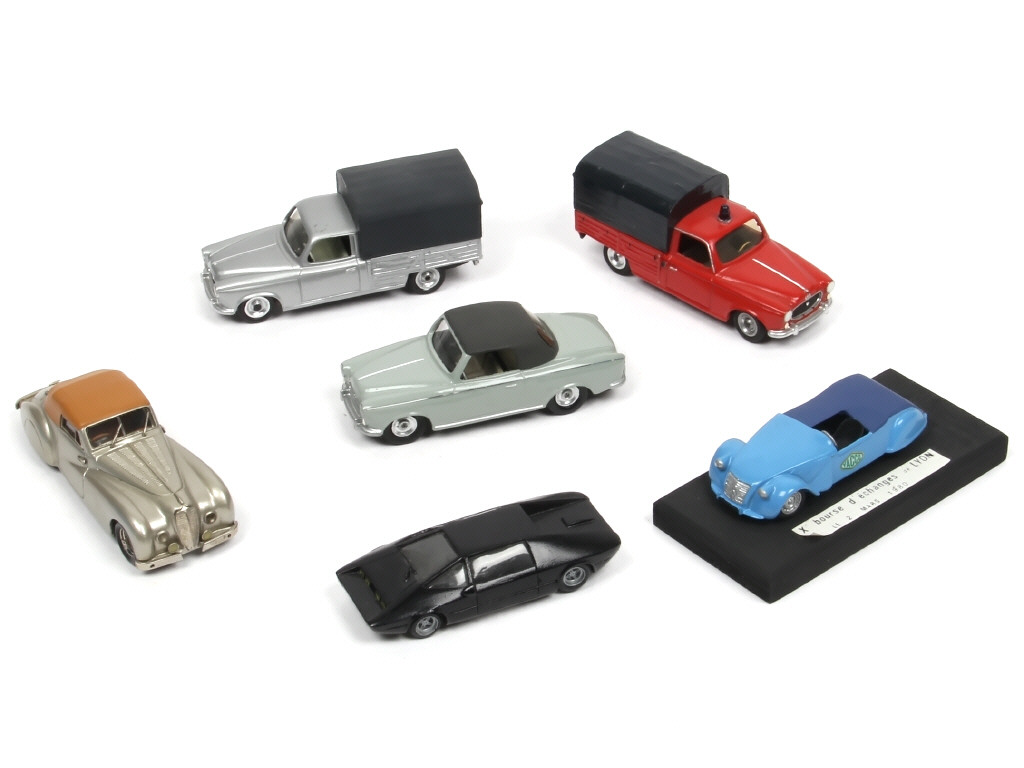 kits montés - miniatures reproduisant notamment les modèles : PEUGEOT 403, DELAHAYE 135 MS & CITROEN 2 CV 'YACCO' (sur socle) - on y retrouve notamment les marques : STL & BELLE EPOQUE - quelques petits éléments à recoller
