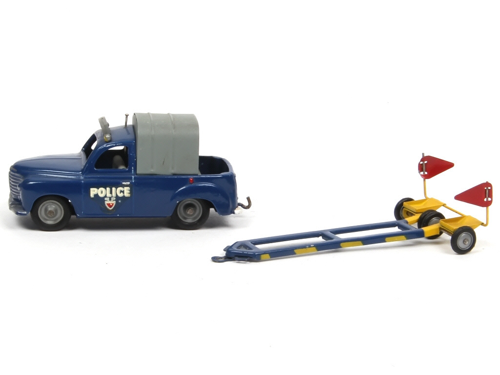 version avec phares-projecteurs jaunes de section ronde (non d'origine) - avec étiquette 'EUROPARC CHARIOT POLICE ZONE BLEUE' collée sur le plancher - petites retouches d'usine sur les fanions - quelques frottements sur la carrosserie par endroits