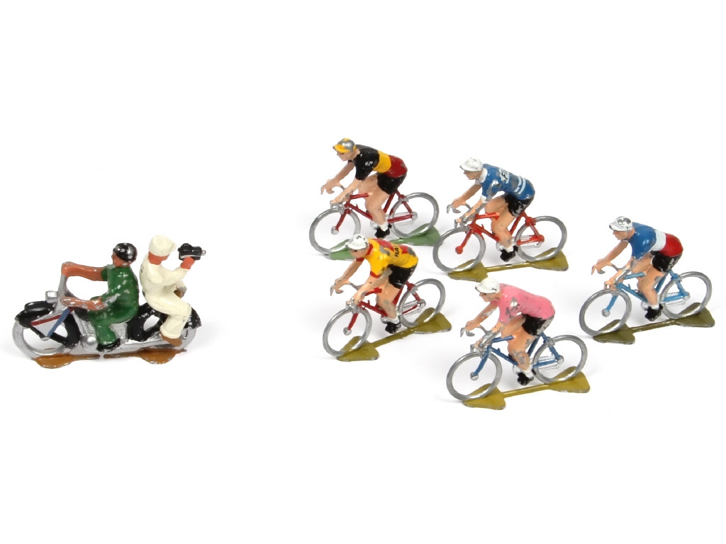 DIVERS Ensemble de 5 cyclistes & une moto de presse