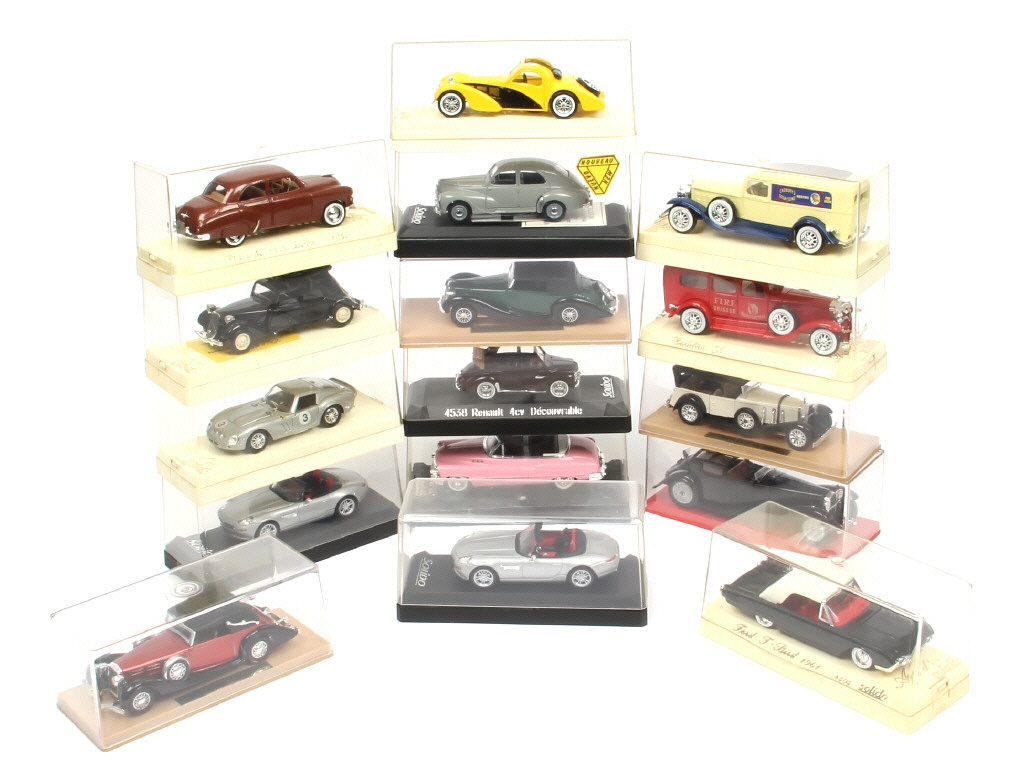 miniatures reproduisant notamment les modèles : CITROËN, RENAULT, CADILLAC, BUGATTI & FORD - possibilité de petits accessoires manquants