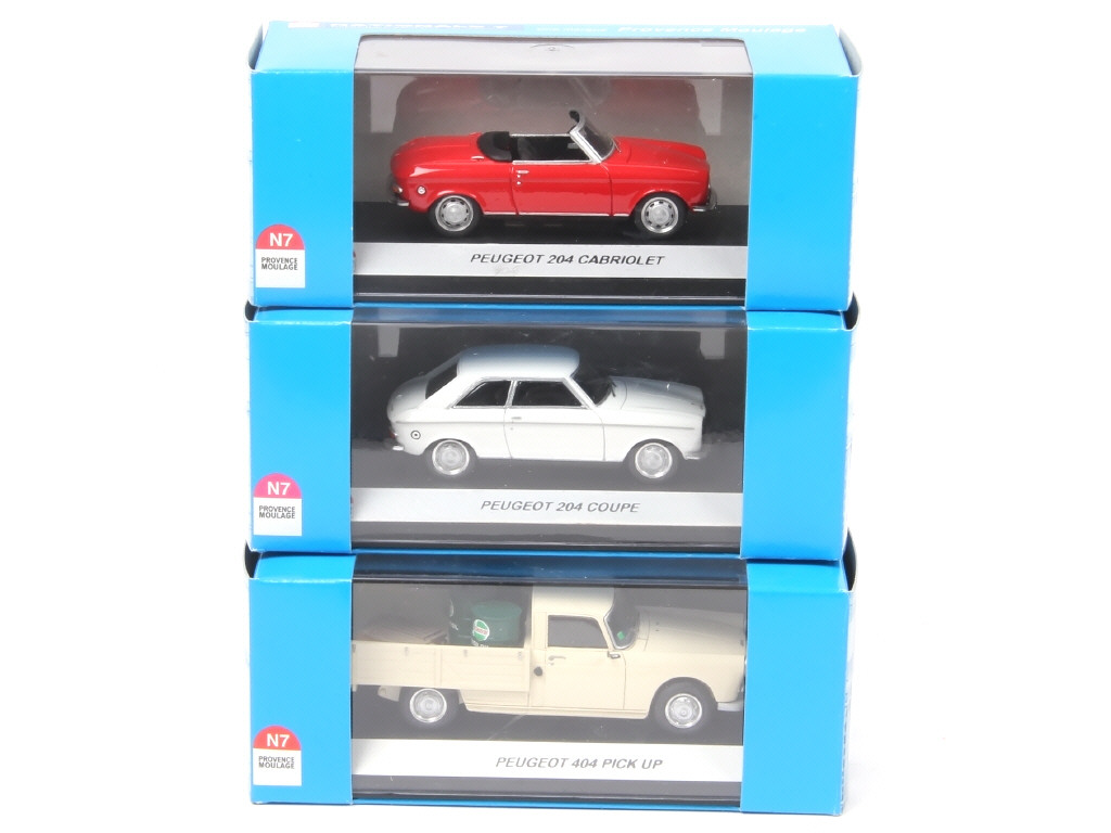 série 'NATIONALE 7' - comprend les modèles : 204 cabriolet, 204 coupé & 404 pick up