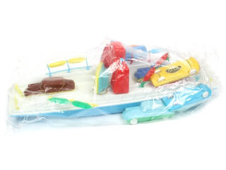 FALK (FRANCE) FERRY BOAT en plastique soufflé bleu ciel, blanc & rouge
