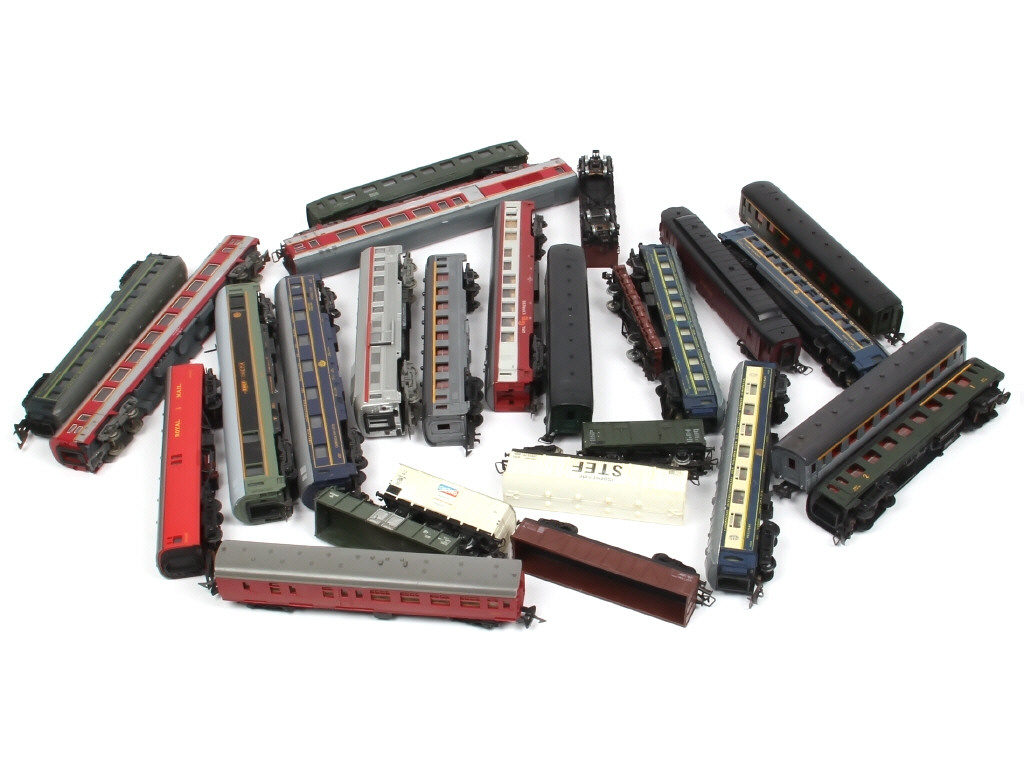 on y retrouve les marques : HORNBY, TROBY, JOUEF & PIKO - avec manques, parties cassées, retouches, traces d'oxydation & carrosseries encrassées