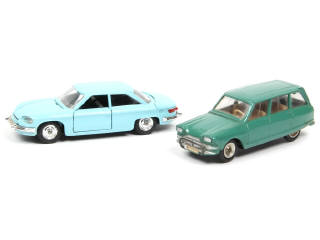 comprend : PANHARD 24 BT (série 'HAUTE-FIDELITE' - moteur terni - avec valise - sans planche de décalques) & CITROËN AMI 6 break (vitre de coffre à refixer - plancher sali & jantes avec petites traces d'oxydation)