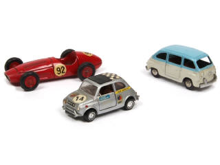 comprend : MASERATI 250 F1 & FIAT 600 M - on y joint une FIAT ABARTH 695 SS série 'SPUTAFUOCO' de la marque MEBETOYS (quelques décalques ajoutés & d'autres manquants)