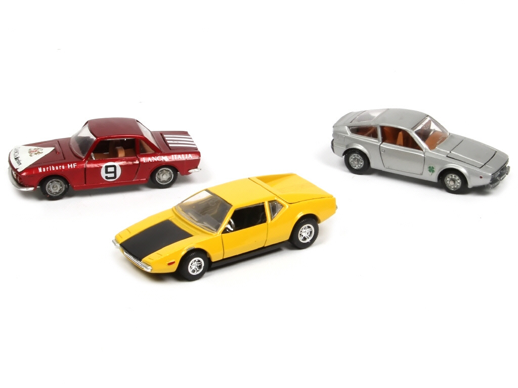 comprend : LANCIA FULVIA Coupé 'LANCIA MARLBORO', ALFA ROMEO JUNIOR ZAGATO (pneus plus ou moins séchés) & FORD- PANTERA DE TOMASO GRANTOROS (en état 'C' - manque un décalque)