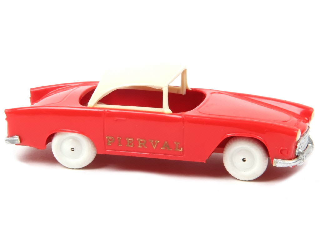 la mention 'PIERVAL' est gravée en lettres dorées sur le côté droit de la carrosserie (légèrement déformée) - quelques petites cassures sur les montants de toit