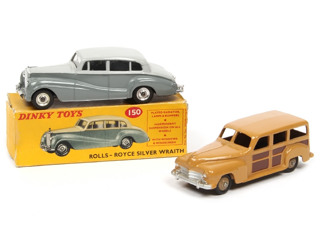 comprend les modèles : PLYMOUTH break woody (proche de l'état 'B') & ROLLS ROYCE SILVER WRAITH (manque une extrémité de pare-chocs avant & sigle de calandre - boite en état 'e')