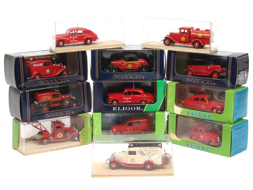 ELIGOR (FRANCE) Ensemble de 12 véhicules de pompiers