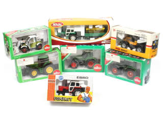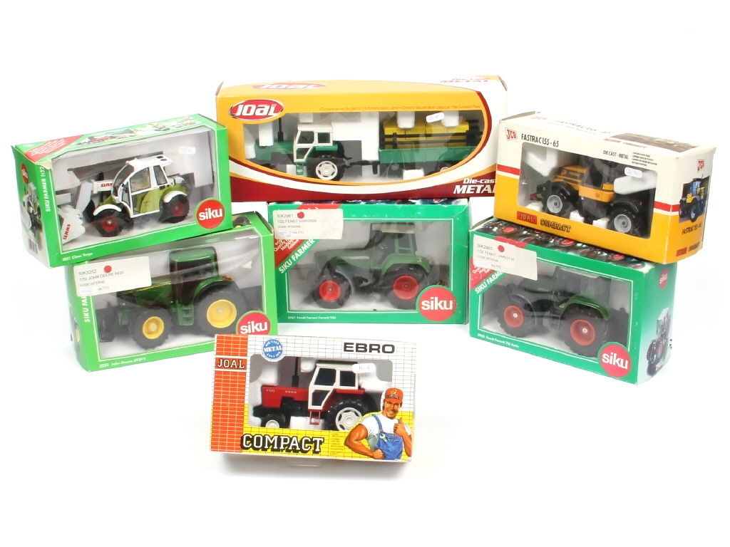 miniatures reproduisant les modèles : EBRO, JCB, JOHN DEERE, CLAAS & FEINDT - quelques boites en état 'c' - on y retrouve les marques : SIKU & JOAL